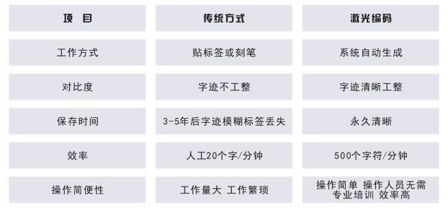 和傳統(tǒng)方法相比,子彈激光編碼器具有操作簡單方便、設備不用經(jīng)常調試、加工精度高、質量好等突出優(yōu)點,比對如下:
